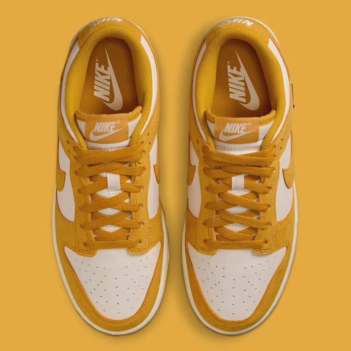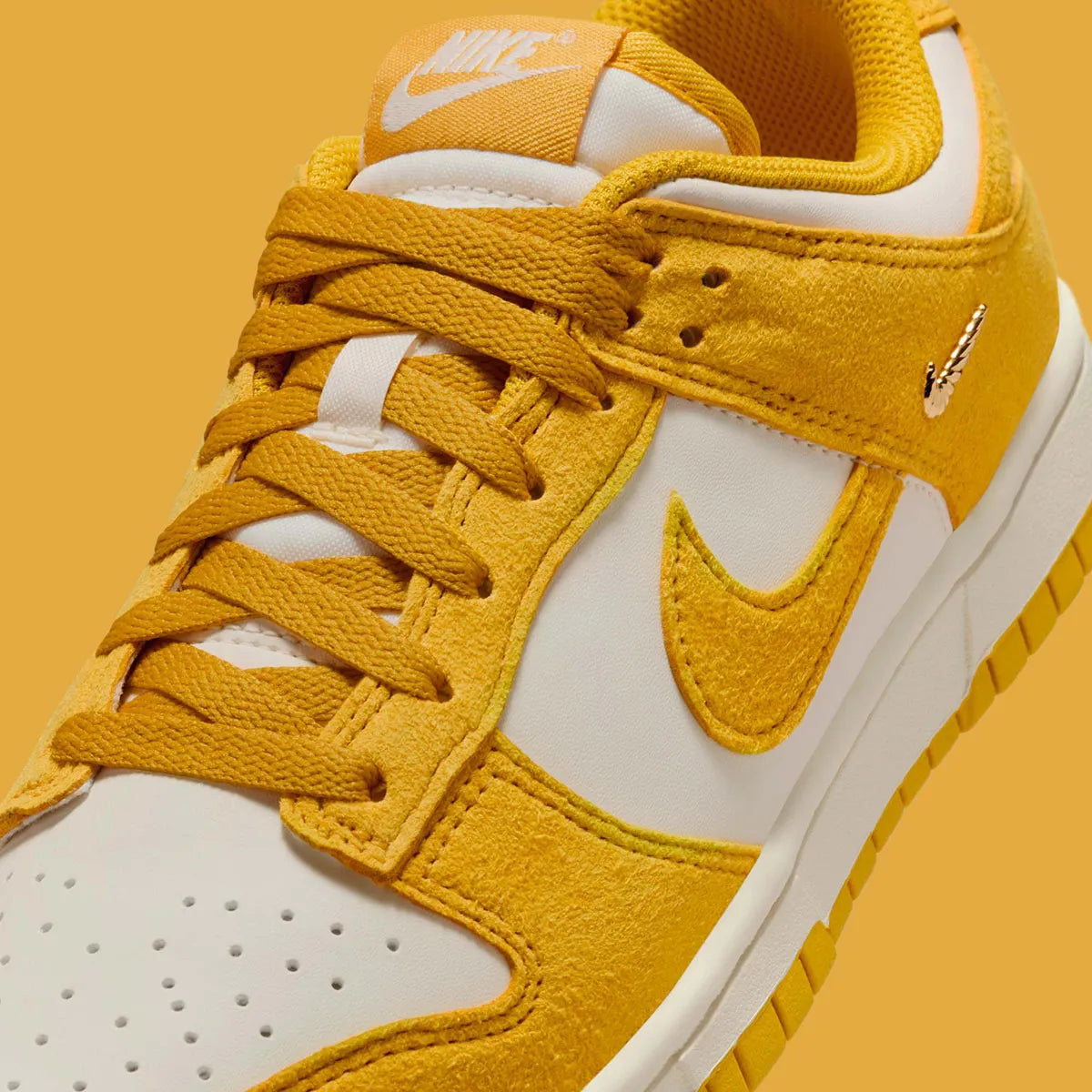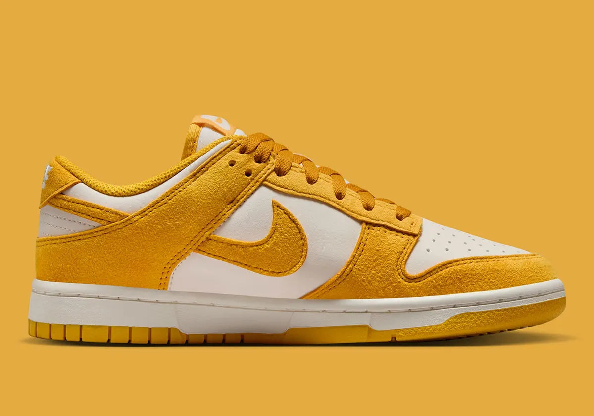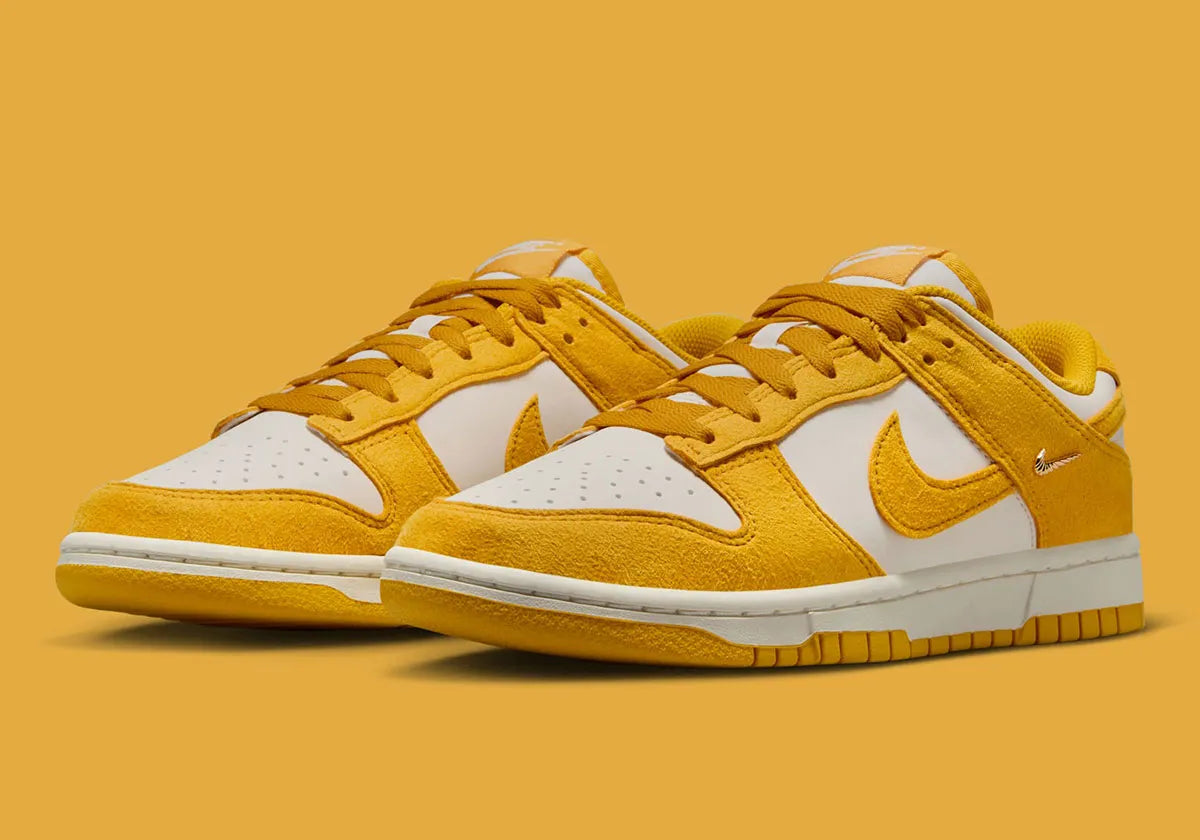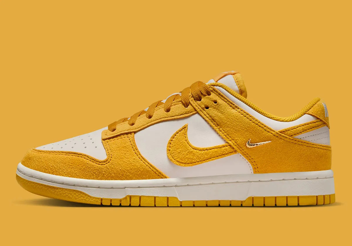 Women's Nike Dunk Low "Gold Mini Swoosh" Yellow/White IB4417-101 Fashion Athletic Sneaker